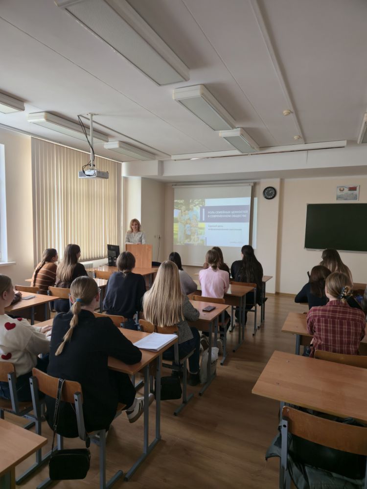 В ходе встреч были рассмотрены ключевые аспекты государственной семейной политики Республики Беларусь, подчеркнута значимость традиционной семьи как основы стабильности общества и воспитания патриотически настроенного подрастающего поколения. Студентам напомнили, что согласно Конституции Республики Беларусь брак, семья, материнство, отцовство и детство находятся под особой охраной государства.