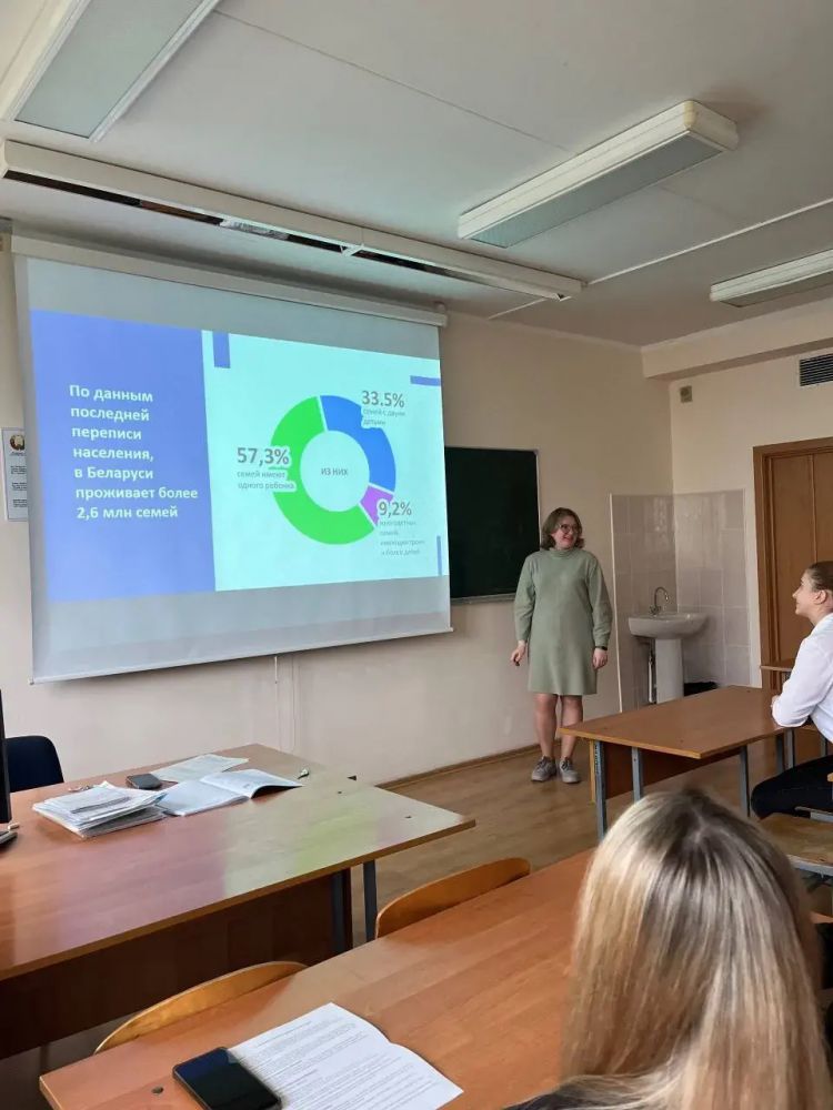 Особое внимание было уделено социальной поддержке семей: государственным пособиям, семейному капиталу, адресной помощи, трудовым и пенсионным гарантиям для родителей, а также мерам по улучшению жилищных условий. Преподаватели подчеркнули, что в Беларуси растёт число многодетных семей — по состоянию на 2025 год их уже около 123 тысяч.