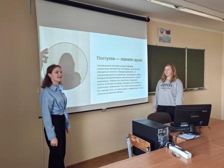 Информационный час в группе НО-21 посвящён теме «Поступки — зеркало души» и прошёл в формате интерактивного обсуждения и рефлексии. Целью встречи стало формирование у студентов осознанного понимания связи между внутренним миром человека и его поступками, а также развитие нравственных ценностей и гражданской ответственности.