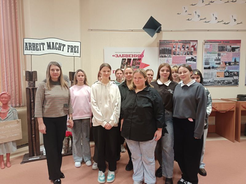 9 октября в рамках информационного часа студенты группы ДО-21 (куратор С. В. Кондратюк) посетили музейную экспозиция БарГУ "Забвению не подлежит". В процессе экскурсии студенты познакомились с историей создания музея, экспонатами Великой Отечественной войны. Посещение музея-выставки напомнило каждому о важности сохранения исторической правды и уважения подвига белорусского народа, благодаря которому мы имеем мирное небо над головой.